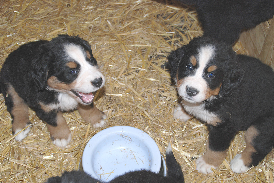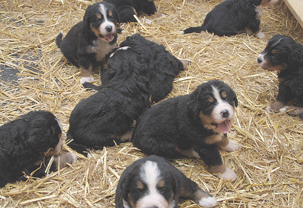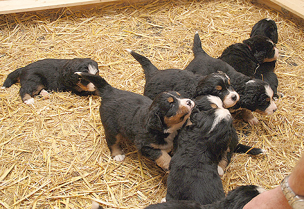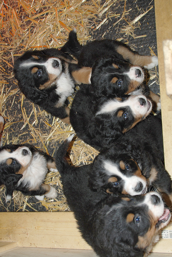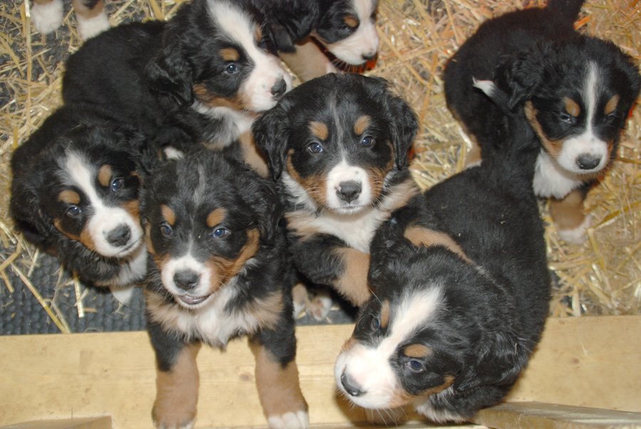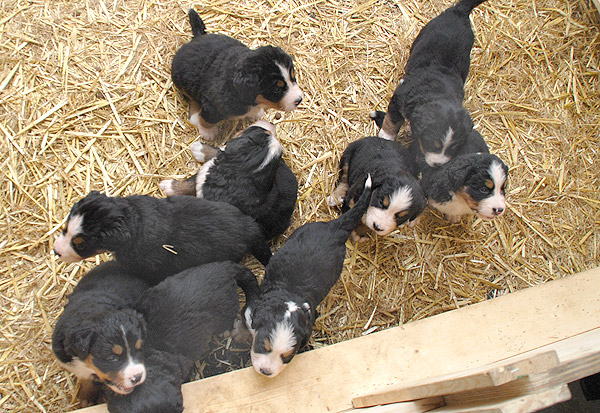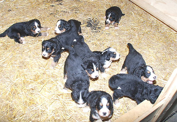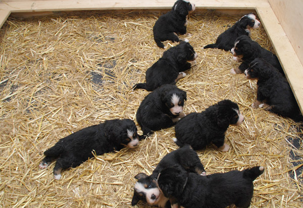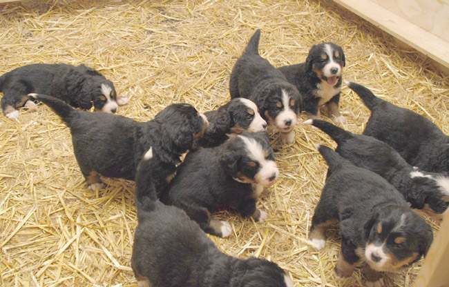 Oben: unser Wurf nach 4 Wochen <- Hier links: Unser Wurf nach 6 Wochen 10 gesunde Welpen - 8 Hündinnnen und 2 Rüden. 9 dieser Welpen werden abgegeben. Besichtigung ist jederzeit nach telefonischer Vereinbarung möglich.